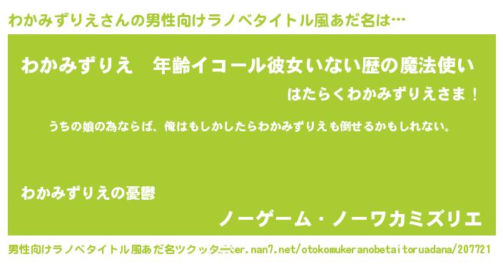 | 欧米人風あだ名 | 『わかみずりえクリステル』 |