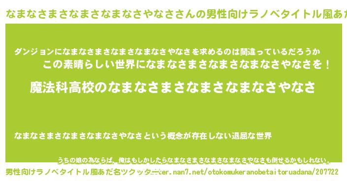 | 女子向けラノベタイトル風あだ名 | 『なまなさまさなまさなまなさやなさアンティーク』 |