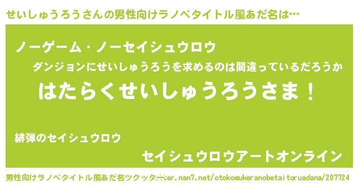 | ヒーロー風カッコイイあだ名 | 『正義の使者せいしゅうろう』 |