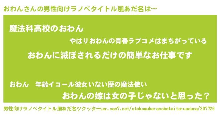 | 胡散臭い通販商品みたいなあだ名 | 『芸能人もオススメする高麗人参…その名も「おわん」』 |