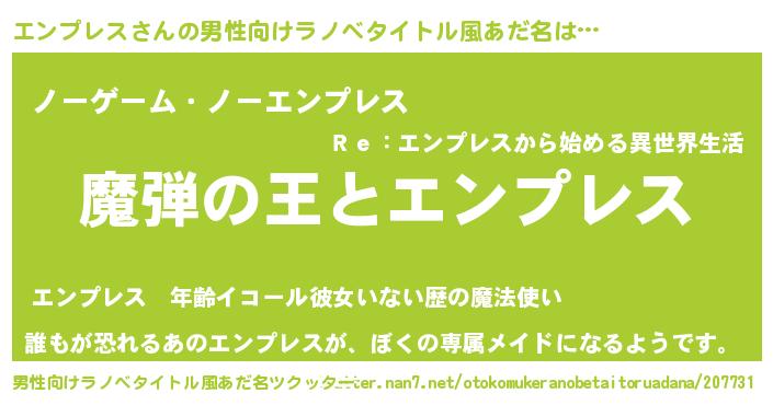 | 女子向けラノベタイトル風あだ名 | 『エンプレスが死なない童話 林檎のエンプレスの診療簿』 |