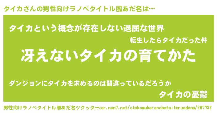 | 胡散臭い通販商品みたいなあだ名 | 『来世でも幸せになれる招き猫…その名も「タイカ」』 |