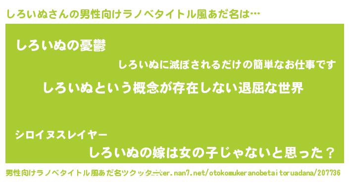 | ヘコむあだ名 | 『しろいぬ(笑)』『しろもー』 |