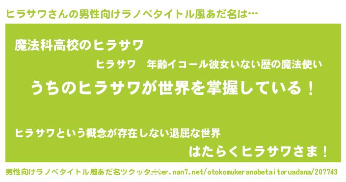 | ヘコむあだ名 | 『ヒラサワ(爆)』『酢こんぶ』 |