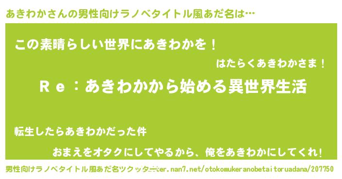 | 女子向けラノベタイトル風あだ名 | 『あきわかストレイドッグス』 |
