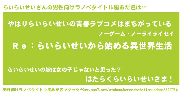 | 意味不明あだ名 | 『自称らいらいせい』 |