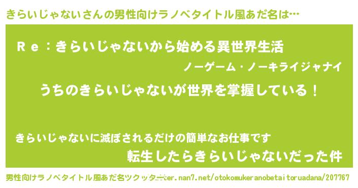 | 恥ずかしいあだ名 | 『キライジャナイデラックス』『きらちん』 |
