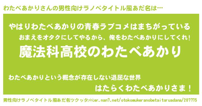 | 意味不明あだ名 | 『自称わたべあかり』 |