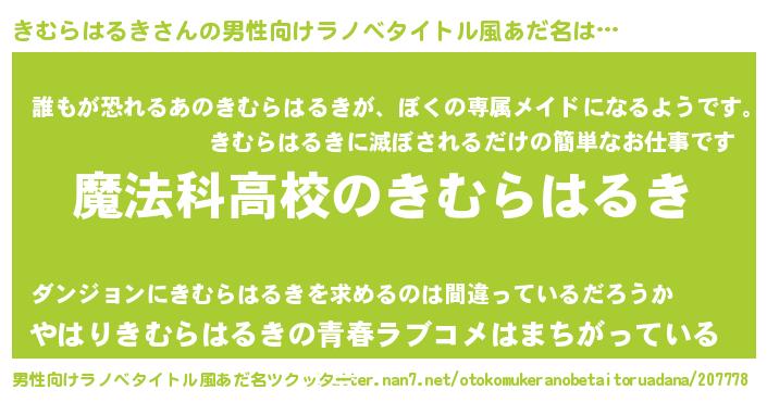 | 女子向けラノベタイトル風あだ名 | 『きむらはるきアンティーク』 |