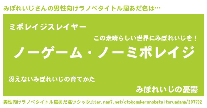 | ヒーロー風カッコイイあだ名 | 『天空の使者みぽれいじ』『仮面ミポダー』 |