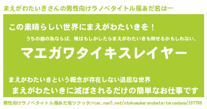 | ヒーロー風カッコイイあだ名 | 『仮面マエダー』『ネオマエガワタイキ』 |