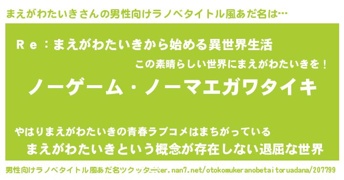| 胡散臭い通販商品みたいなあだ名 | 『モンドセレクションを受賞したマグネット磁石…その名も「まえがわたいき」』 |