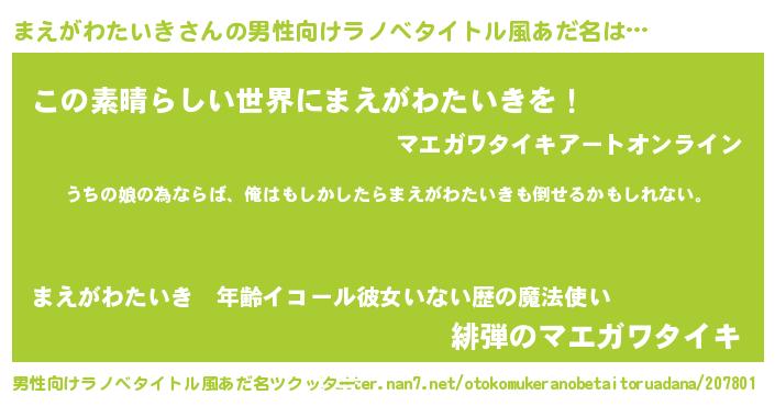 | ファンタジー風あだ名 | 『エターナルマエガワタイキー』 |