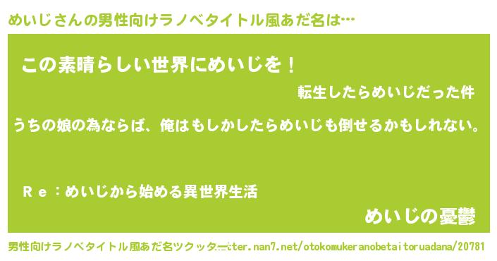 | 女子向けラノベタイトル風あだ名 | 『めいじの婚約者』『闇のめいじ』 |