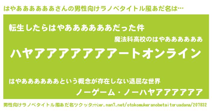| 胡散臭い通販商品みたいなあだ名 | 『億万長者になれるブレスレット…その名も「はやああああああ」』 |