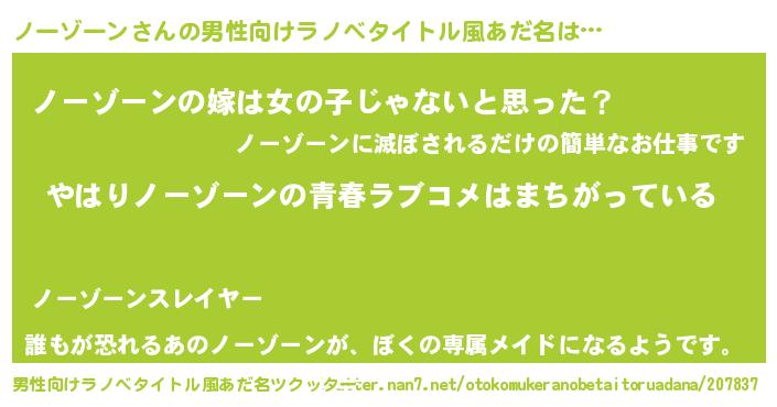 | 女子向けラノベタイトル風あだ名 | 『ノーゾーンの雑貨屋さん』 |