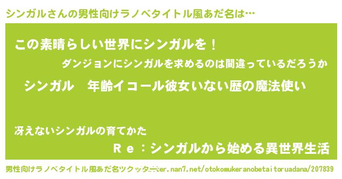 | 胡散臭い通販商品みたいなあだ名 | 『あなたにだけ特別に提供する100年もののヴィンテージワイン…その名も「シンガル」』 |