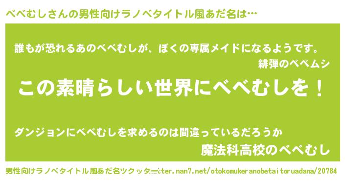 | 伝説のあだ名 | 『古より伝わる暗殺者べべむし』 |