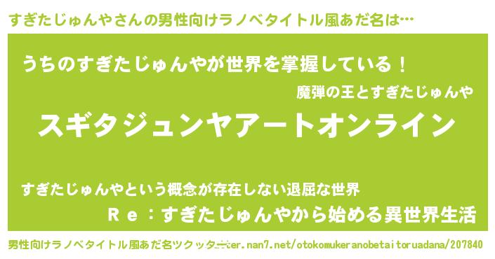| 胡散臭い通販商品みたいなあだ名 | 『モテモテ間違いなしブレスレット…その名も「すぎたじゅんや」』 |