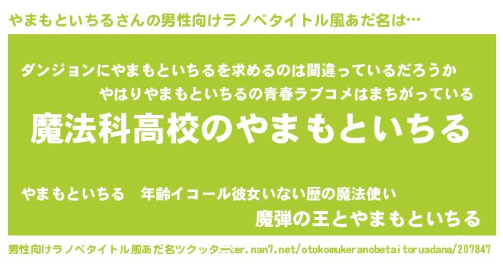| 女子向けラノベタイトル風あだ名 | 『やまもといちるなんてお断りですっ。』 |