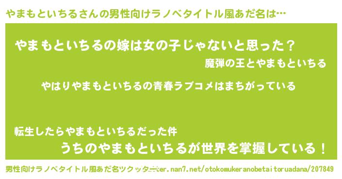 | 女子向けラノベタイトル風あだ名 | 『やまもといちる伯爵の花嫁』 |
