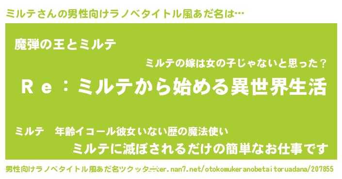 | 女子向けラノベタイトル風あだ名 | 『ミルテストレイドッグス』 |