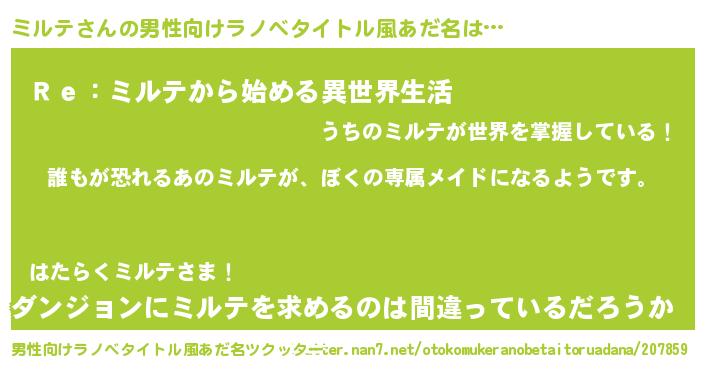 | ファンタジー風あだ名 | 『ミルディッシュ』『ゼミルトゥ』 |