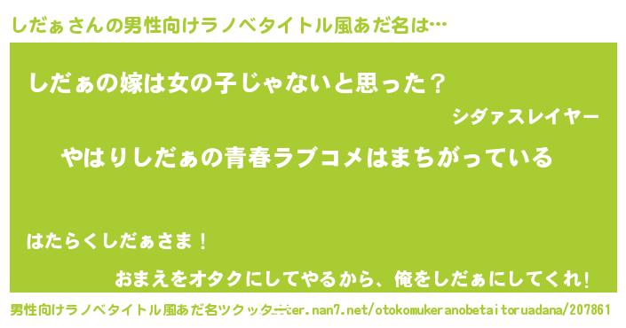 | 女子向けラノベタイトル風あだ名 | 『しだぁの雑貨屋さん』 |