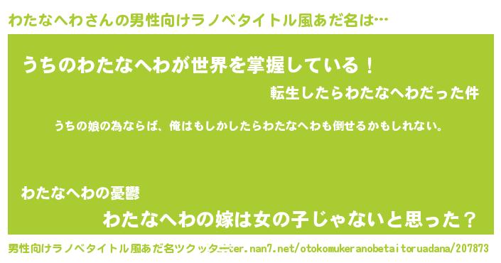 | 女子向けラノベタイトル風あだ名 | 『わたなへわの婚約者』 |