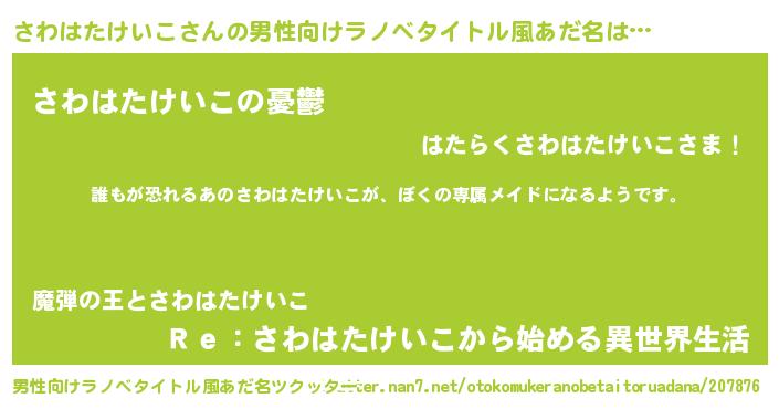 | ヘコむあだ名 | 『さわはたけいこ(小並感)』『さわにゅー』 |