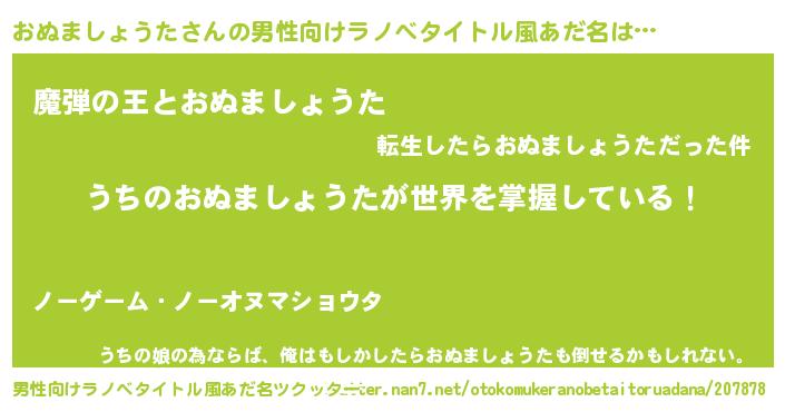 | 意味不明あだ名 | 『住所不定無職おぬましょうた(14歳)』 |