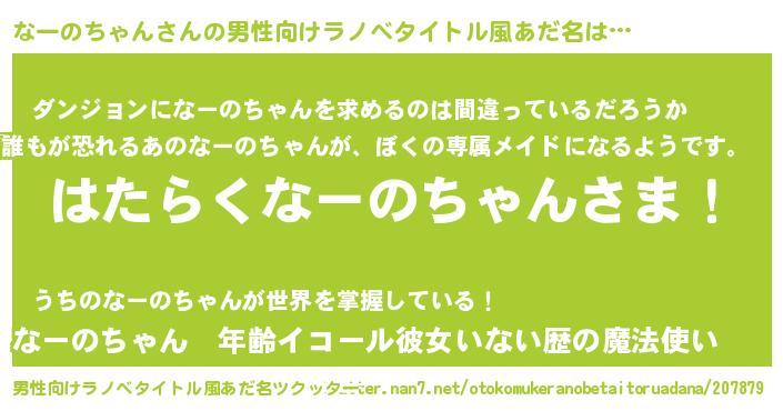 | 胡散臭い通販商品みたいなあだ名 | 『信頼と実績のペンダント…その名も「なーのちゃん」』 |