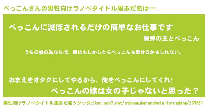 | ヘコむあだ名 | 『酢こんぶ』『べっ太郎』『べっにー』 |