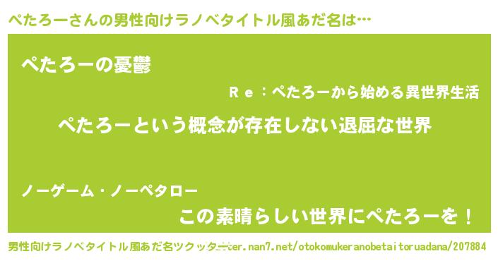| 女子向けラノベタイトル風あだ名 | 『ぺたろーの契約王妃』『闇のぺたろー』 |