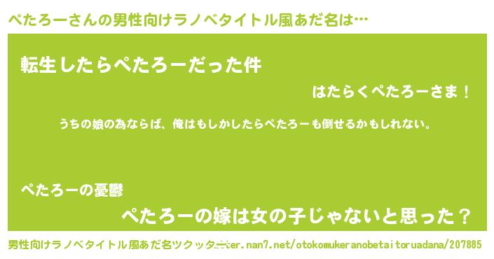 | 女子向けラノベタイトル風あだ名 | 『ぺたろーの婚約者』 |