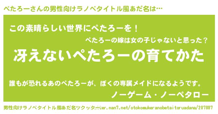 | 女子向けラノベタイトル風あだ名 | 『シンデレラぺたろー家の靴箱館』 |