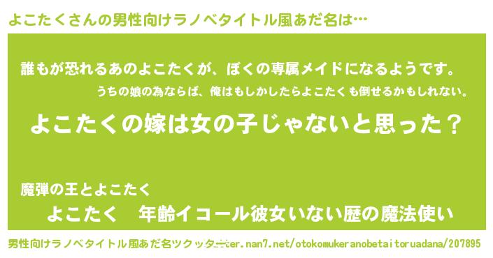 | 女子向けラノベタイトル風あだ名 | 『よこたく様がみてる』 |