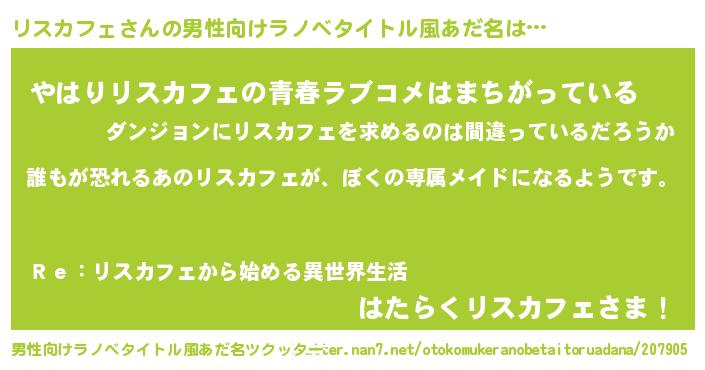 | 女子向けラノベタイトル風あだ名 | 『異世界でカフェリスカフェを開店しました。』 |