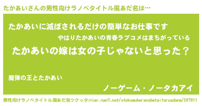 | ポケモン風あだ名 | 『ヒタカアイ』『タカゴンZ』 |