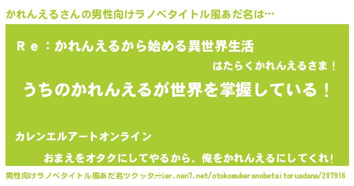 | 女子向けラノベタイトル風あだ名 | 『男装かれんえるの憂鬱な任務』 |