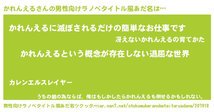 | 胡散臭い通販商品みたいなあだ名 | 『絶対に幸福をもたらす水素水…その名も「かれんえる」』 |