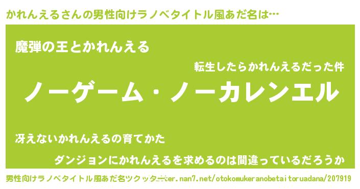 かれんえるさんの男性向けラノベタイトル風あだ名をツクッター!