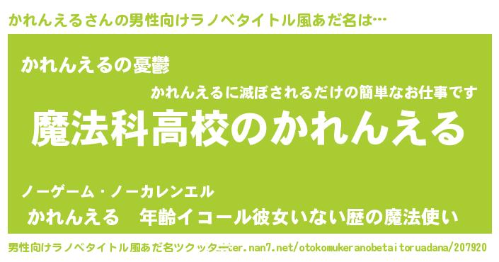 | 女子向けラノベタイトル風あだ名 | 『かれんえるアンティーク』 |