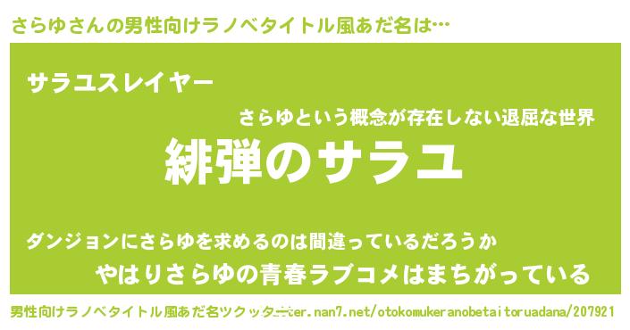 | ヒーロー風カッコイイあだ名 | 『ウルトラさらゆマン』『ネオサラユ』 |