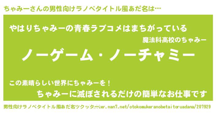 | 胡散臭い通販商品みたいなあだ名 | 『お金では代えられないイリジウム磁石…その名も「ちゃみー」』 |