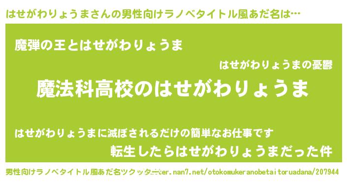 | 女子向けラノベタイトル風あだ名 | 『はせがわりょうまアンティーク』 |