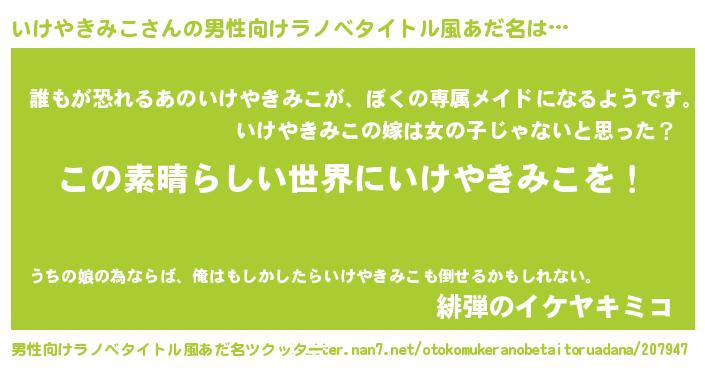 | ヘコむあだ名 | 『いけやきみこ(笑)』『いけを』 |