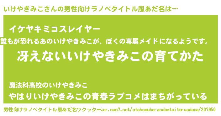 | 女子向けラノベタイトル風あだ名 | 『男装いけやきみこの憂鬱な任務』 |