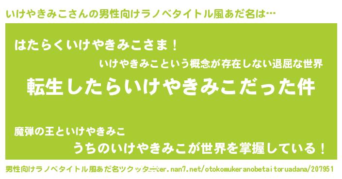 | 胡散臭い通販商品みたいなあだ名 | 『来世でも幸せになれる健康食品…その名も「いけやきみこ」』 |