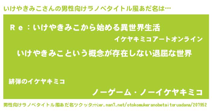 | 意味不明あだ名 | 『永久保存いけやきみこ』 |